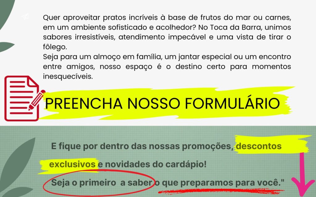 toca da barra landing page